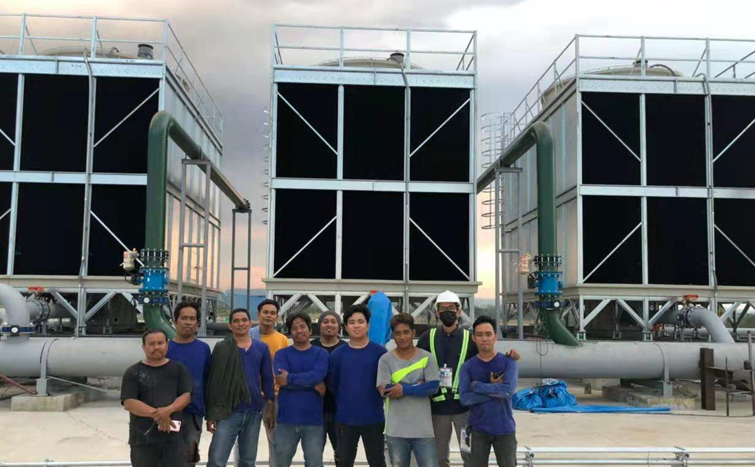 克拉克機場新裝制冷站系統(tǒng)采用鈕盈全鋼板橫流式冷卻塔,裝機容量3 x 1050HRT.