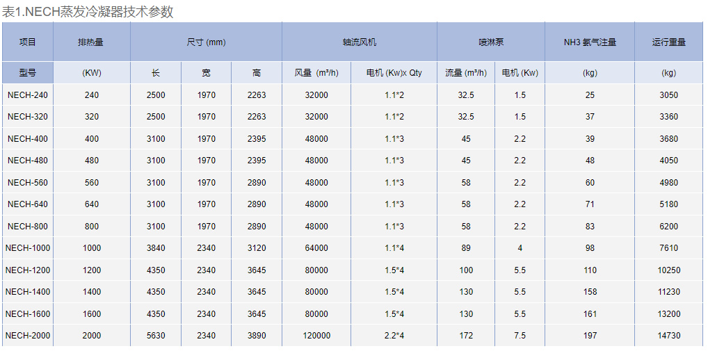 NECH 系列是一款常見的蒸發(fā)冷凝器,復(fù)合流傳熱(空氣和制冷劑蒸汽呈垂直交叉方向)。 這樣的設(shè)計(jì)使空氣均勻經(jīng)過冷凝器,提高換熱效率。